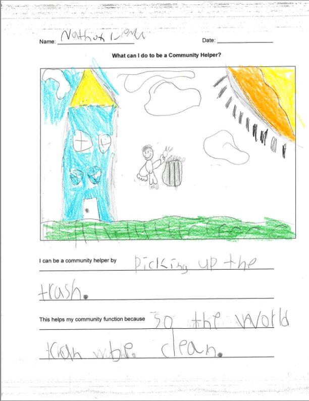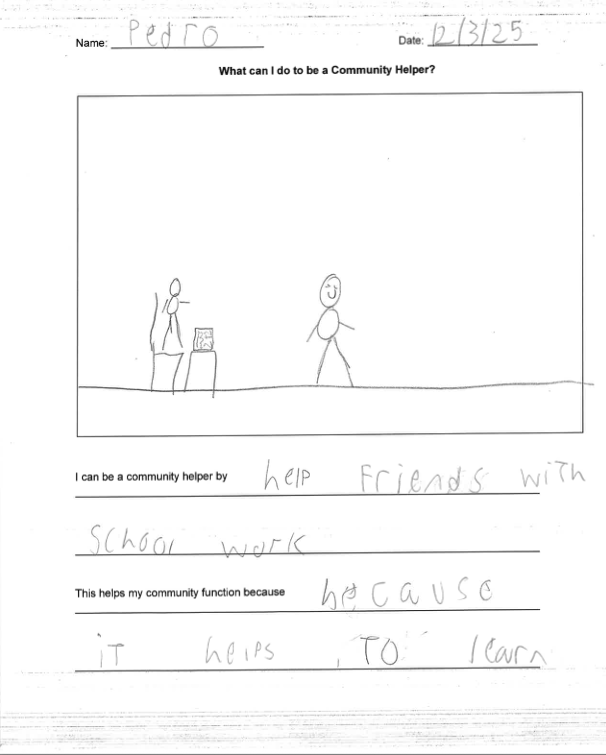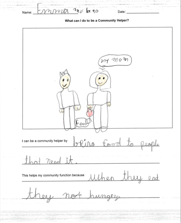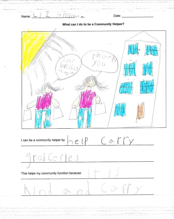 Students in second grade were asked to research community members. After they wrote about different ways they could be good community members in order to improve society.